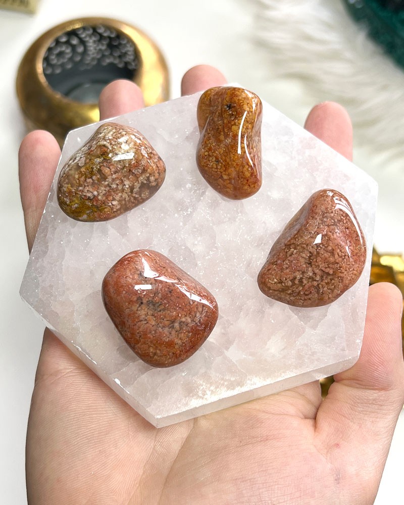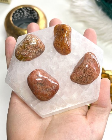 Ágata Musgo Rosa / Laranja é um cristal que simboliza a conexão entre o chakra cardíaco com o Sacral e representa o desejo, a emoção e o optimismo em todas as relações que tem e que cria, tanto com o mundo como consigo próprio(a).