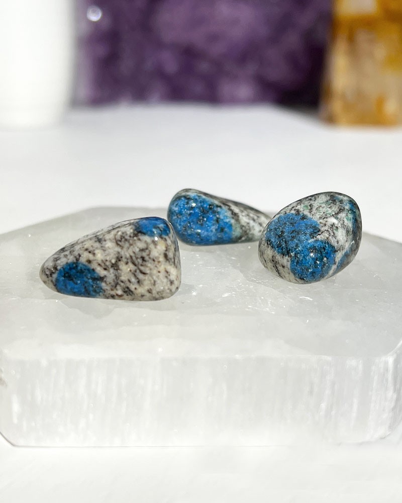 O Cristal K2 é uma combinação de Azurite em Granito, encontrada na segunda mais alta montanha do mundo. Uma pedra única e rara pelo difícil acesso na sua extração, permite alcançar os mais altos "picos" de consciência e energia na realidade da terceira dimensão.