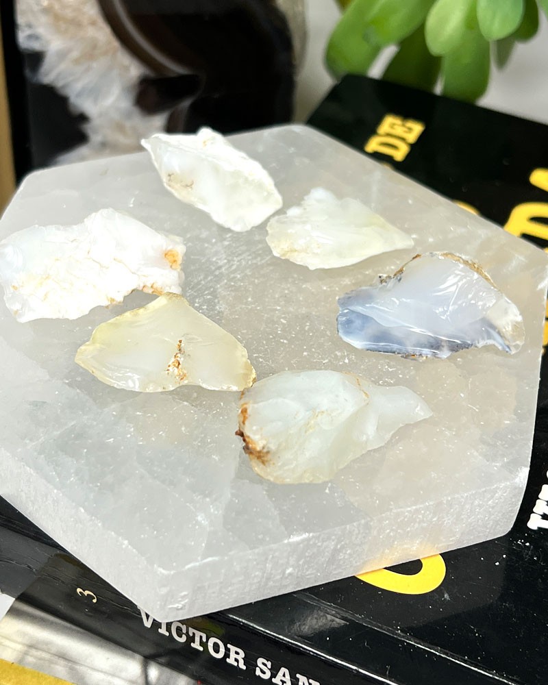 A Opala Cacholong é um tipo de opala branca com um lustre e tonalidade que recorda a madrepérola.