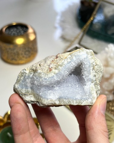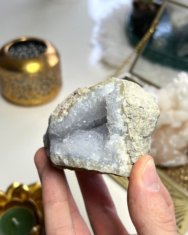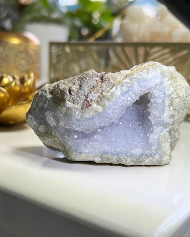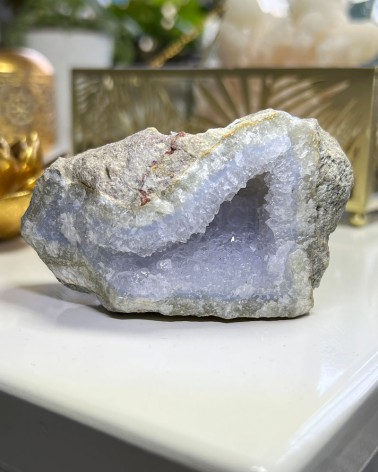 Exemplar natural de Ágata Azul que apresenta uma bela cristalização, muito especial para o seu Altar ou para a decoração do seu espaço.