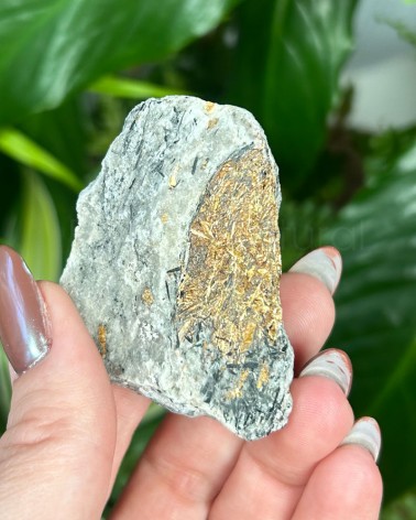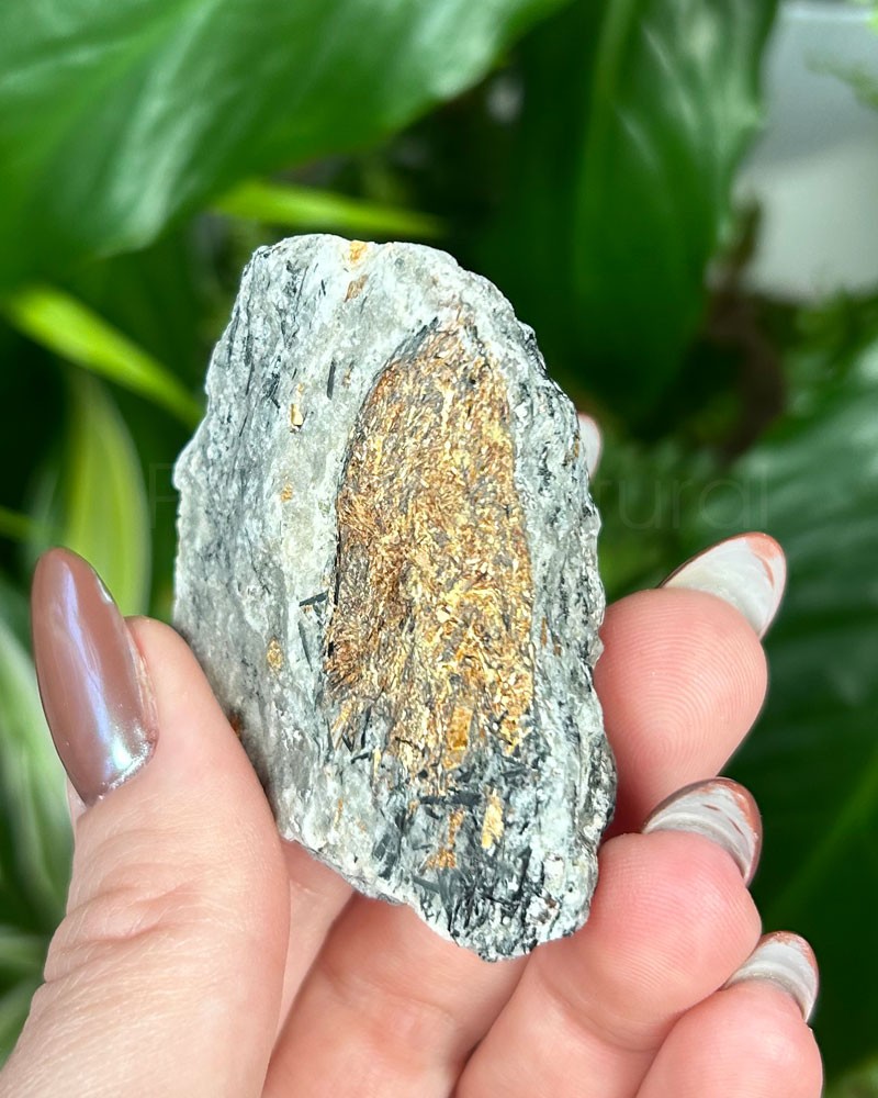 A astrofilita forma lâminas douradas que irradiam para fora como uma estrela. Seu nome vem do grego astron, que significa estrela, e phyllon, que significa folha.
