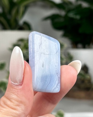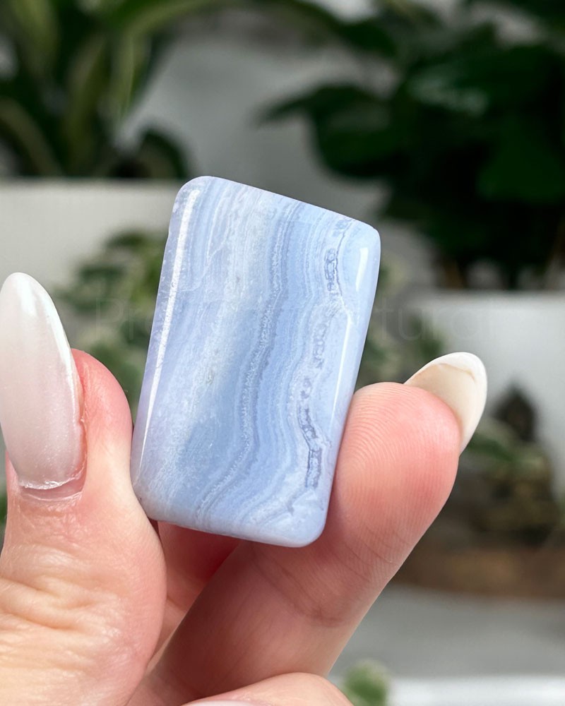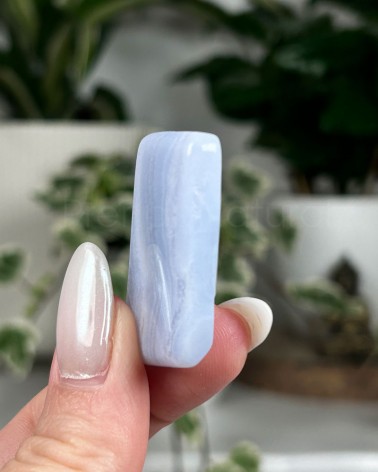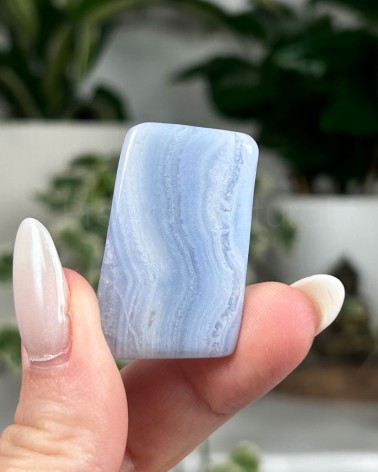 A Ágata Azul emite uma vibração suave e elegante. É conhecida como cristal de encorajamento e suporte ao caminho da alma, do apresentar da essência e verdade pessoal.