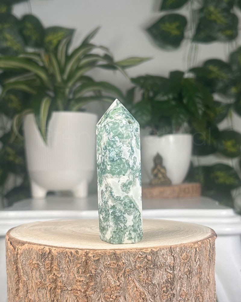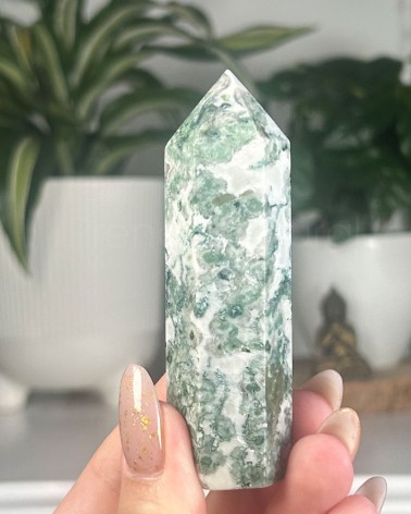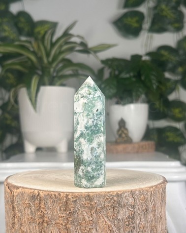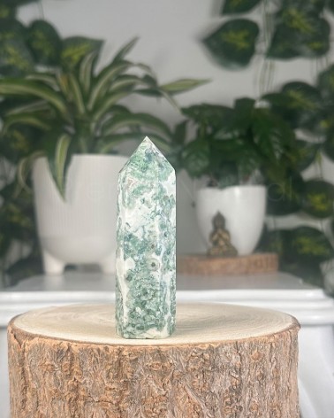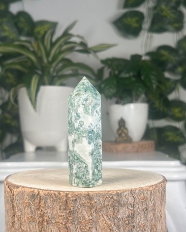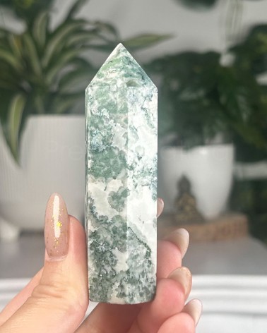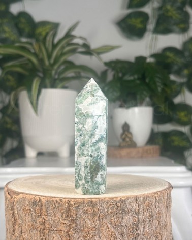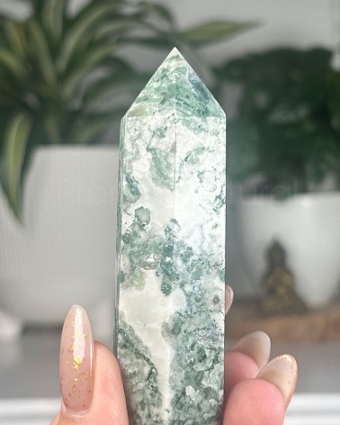 A Ágata Musgo é um cristal que representa as energias da Mãe Gaia, que apresenta intensos e profundos verdes incluídos no cristal translúcido de calcedónia.