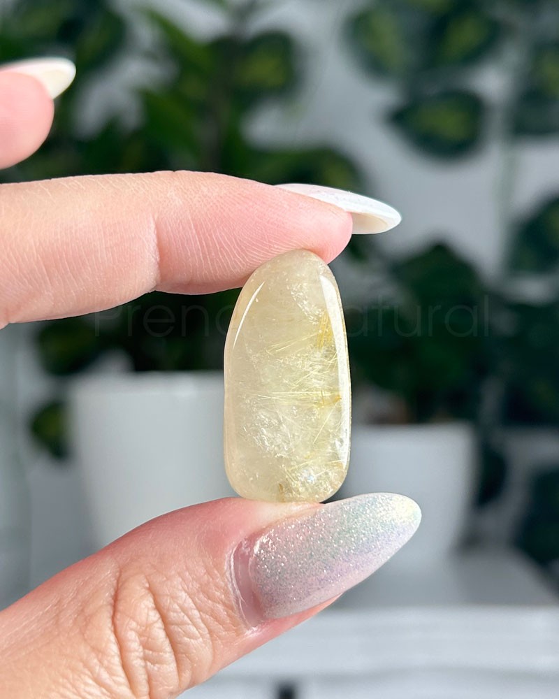 O quartzo Rutilado dourado é um cristal conhecido por ser um iluminador da alma, contendo e transmitindo o raio dourado. Acelera o processo de abertura de bloqueios e a libertação dos mesmos.