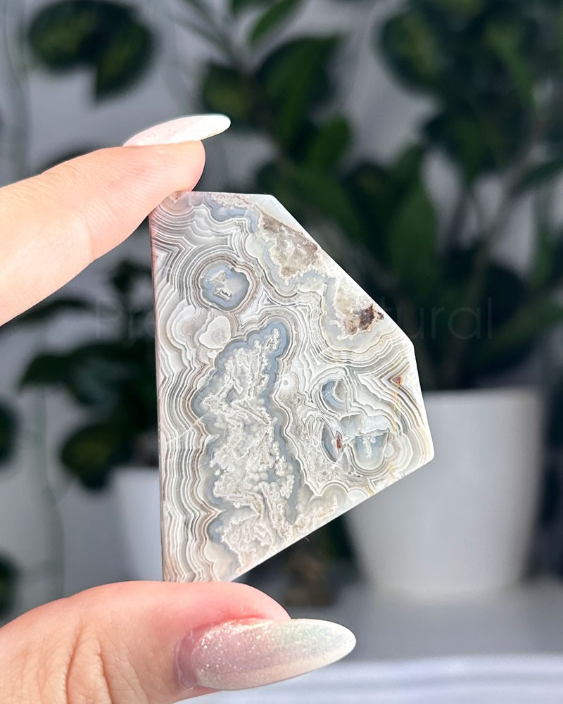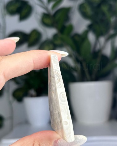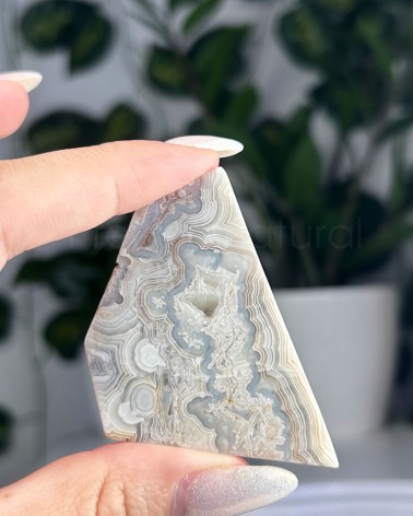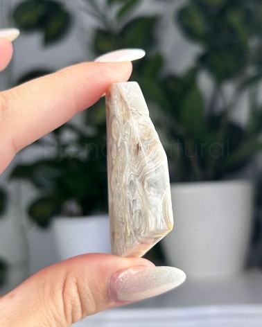 A ágata mexicana apresenta um padrão de texturas e cores, de sensação energizante, que trabalha os chakras plexo solar e base.