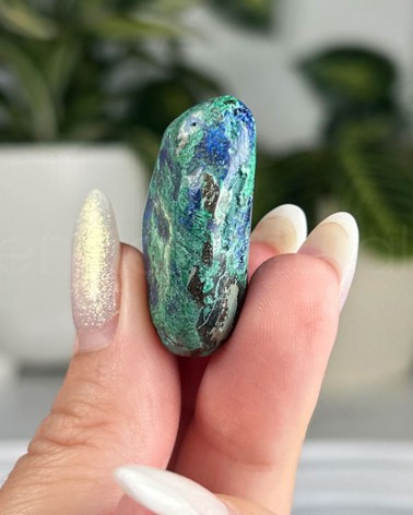 Exemplar com inclusões de crisocola e malaquite.