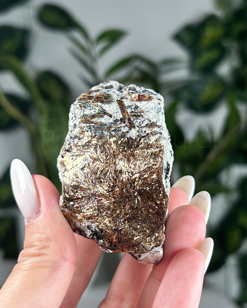 A astrofilita forma lâminas douradas que irradiam para fora como uma estrela. Seu nome vem do grego astron, que significa estrela, e phyllon, que significa folha.