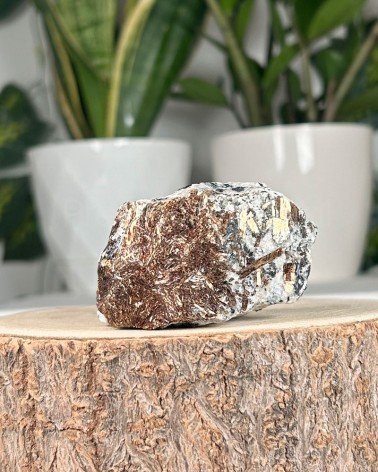 Astrofilite é um mineral raro, proveniente da Península de Kola , Rússia. Apresentamos um exemplar de brilhantes minerais de Astrofilite em matriz de Albite.