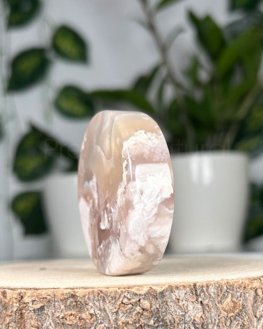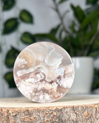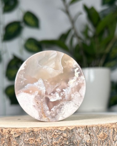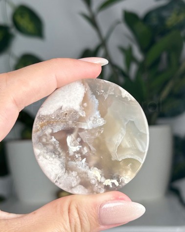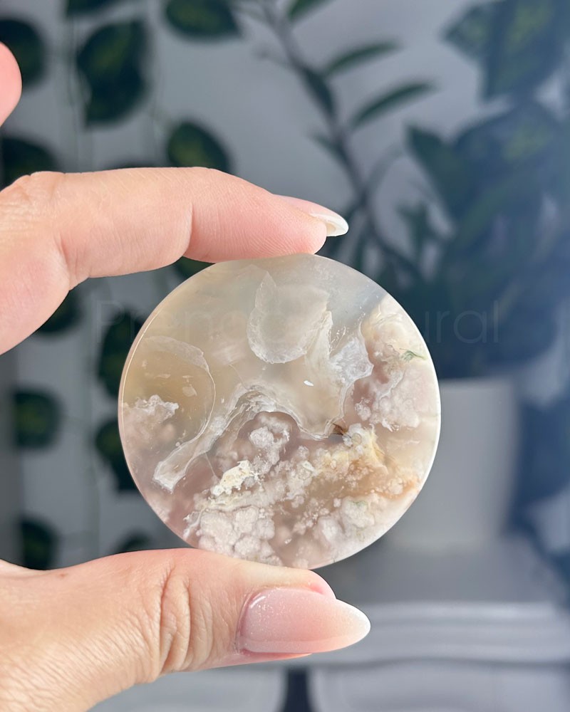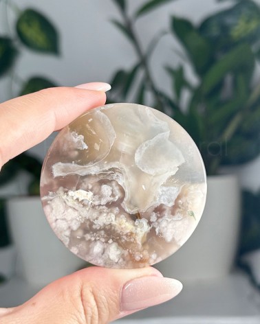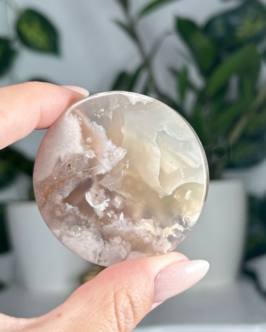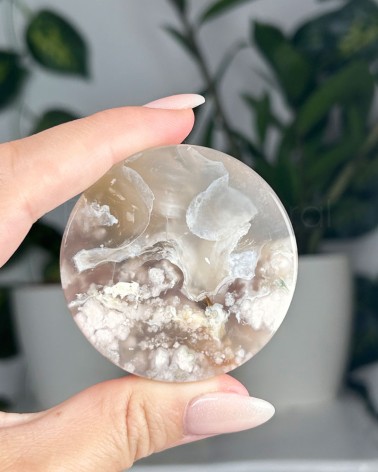 A Ágata Flor é um cristal descoberto recentemente em Madagáscar, onde a sua aparência aparenta flores brancas que são corais fossílizados em calcedónia, este cristal também é conhecido por Ágata Cherry Blossom. Alguns exemplares contam com raras inclusões verdes de clorite que representa a regeneração energética e harmonização do chakra cardíaco.