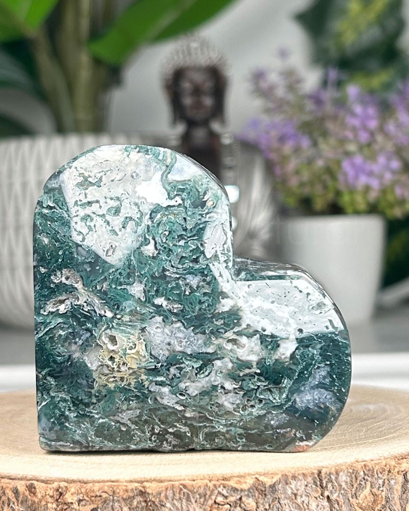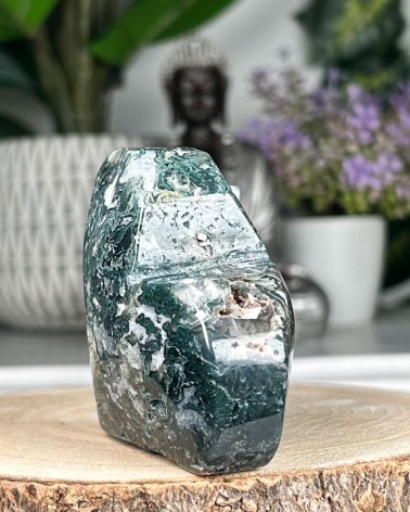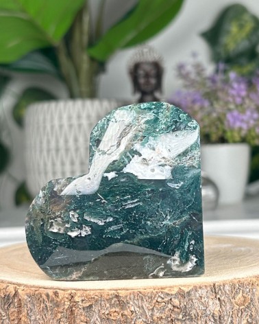 A Ágata Musgo é um cristal que representa as energias da Mãe Gaia, que apresenta intensos e profundos verdes incluídos no cristal translúcido de calcedónia.