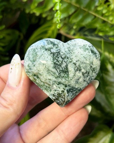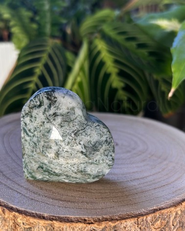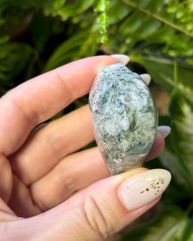 A Ágata Musgo é um cristal que representa as energias da Mãe Gaia, que apresenta intensos e profundos verdes incluídos no cristal translúcido de calcedónia.