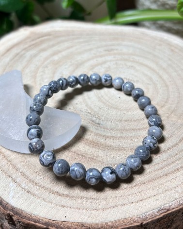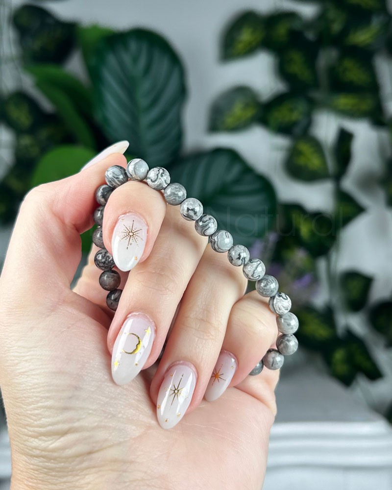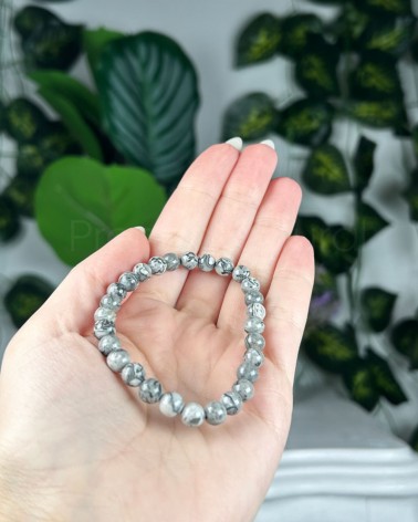 Jaspe Folha Prateada - Pulseira esferas (6-7mm)