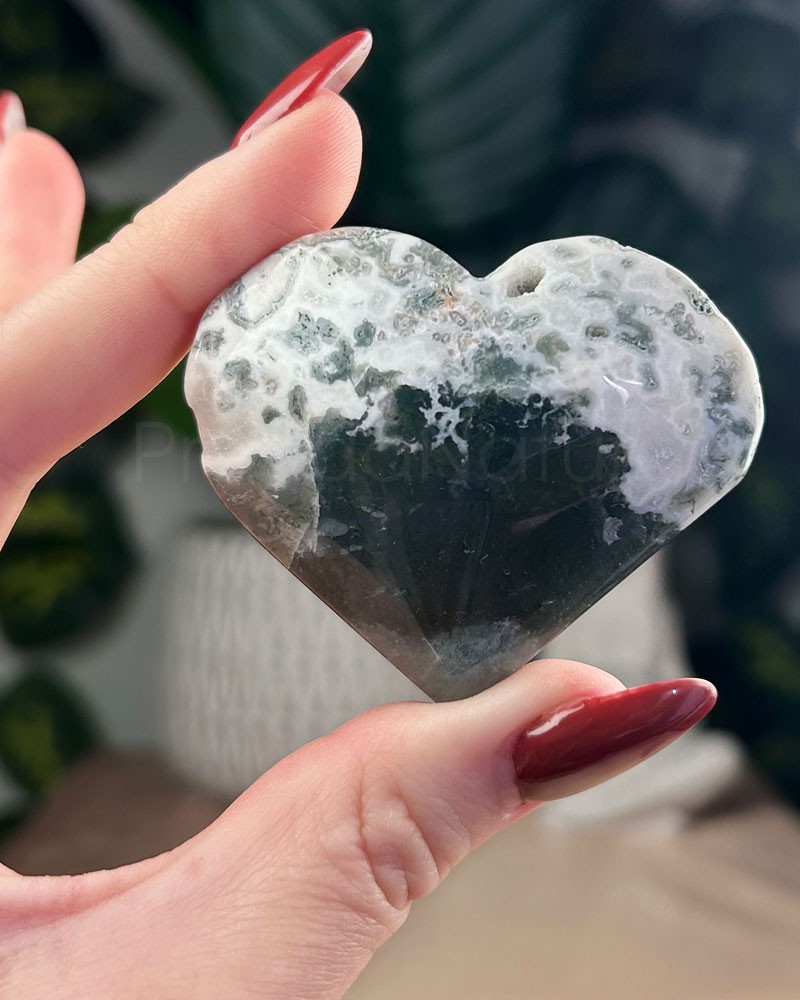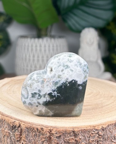 A Ágata Musgo é um cristal que representa as energias da Mãe Gaia, que apresenta intensos e profundos verdes incluídos no cristal translúcido de calcedónia.