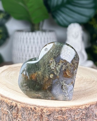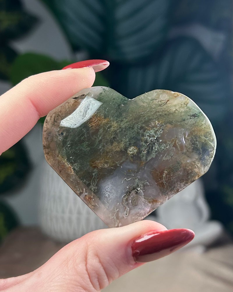 A Ágata Musgo é um cristal que representa as energias da Mãe Gaia, que apresenta intensos e profundos verdes incluídos no cristal translúcido de calcedónia.