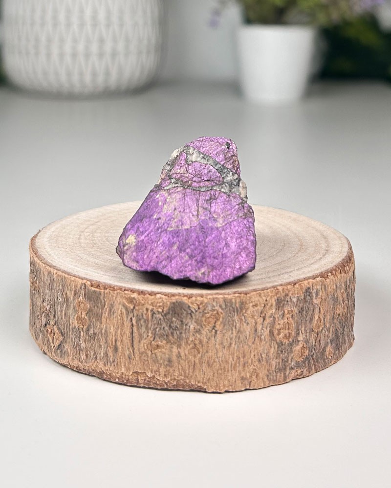 A cativante tonalidade roxa deste mineral simboliza a realeza, a espiritualidade e a intuição. Acredita-se que melhora o crescimento espiritual, aumenta a intuição e estimula a criatividade.