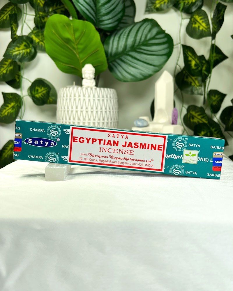 Incenso Original Satya, com aroma delicado e exótico de Jasmim Egípcio. Combina notas florais intensas, doces e profundamente perfumadas, criando um ambiente elegante e envolvente.